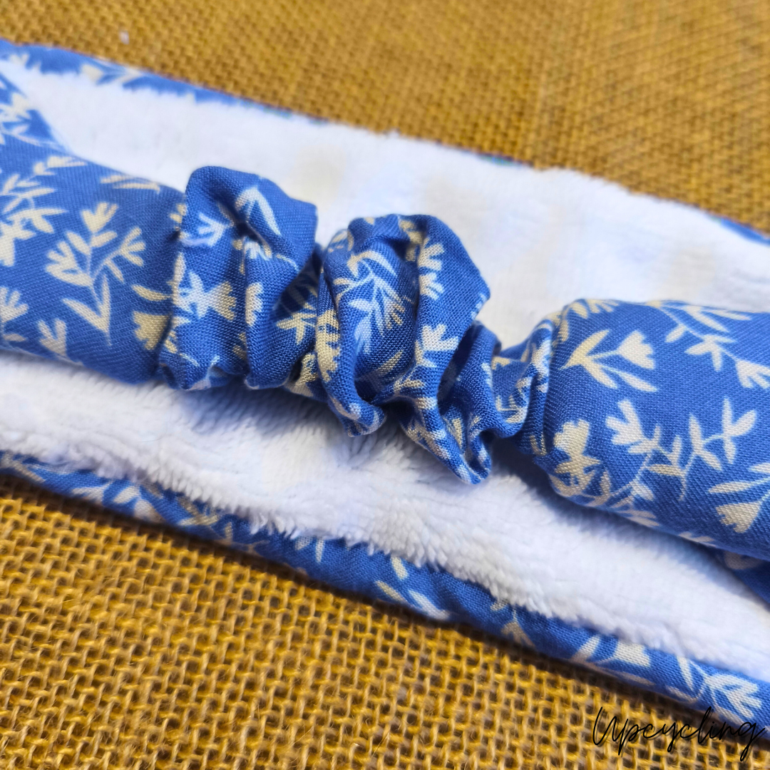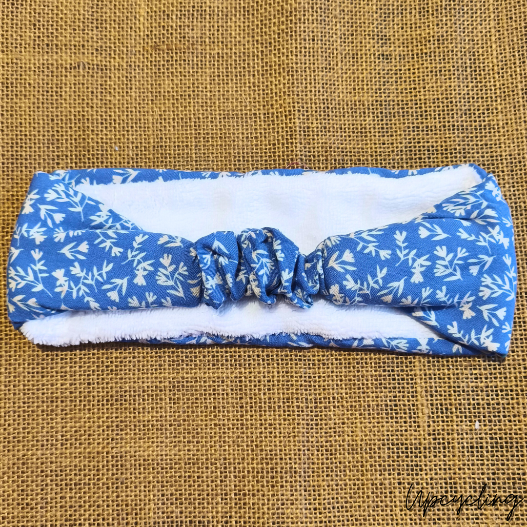 Fabriqué à partir de tissu recyclé, ce bandeau t’accompagnera au quotidien. Grâce à son coté ultra doux, en tissu bambou éponge, il t’offrira douceur et confort chaque matin. Tes cheveux sont protégés et ils ne te dérangent plus lors de ton maquillage, démaquillage ou de tes masques. Son tissu bleu à fleurs blanches, apportera gaieté et féminité lors de tes routines beauté.