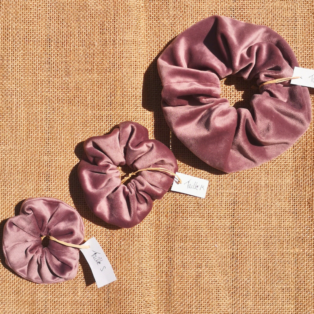 Chouchou velours vieux rose | 3 tailles : S, M et L