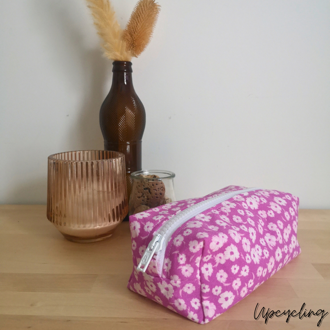 Découvre cette trousse de voyage carrée UPcyclée, un accessoire unique, pratique et éco-responsable. Entièrement fabriquée à la main, avec des tissus issus de vêtements de seconde main soigneusement sélectionnés.